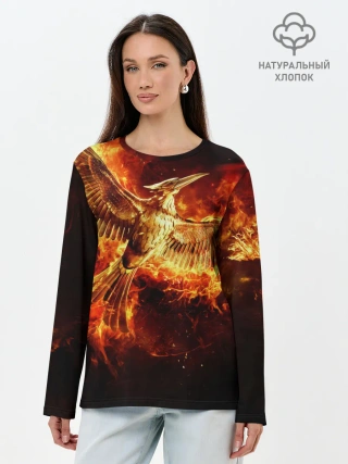 Лонгслив женский. Хлопок / Феникс в огне