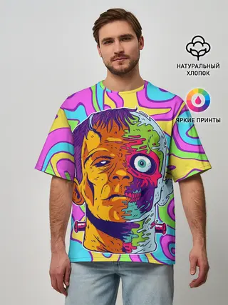 Мужская футболка оверсайз / Психоделический Франкенштейн