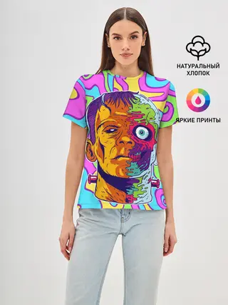 Женская базовая футболка / Психоделический Франкенштейн