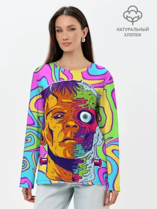 Лонгслив женский. Хлопок / Психоделический Франкенштейн