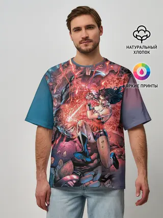 Мужская футболка оверсайз / Чудо-женщина VS Дарксайд