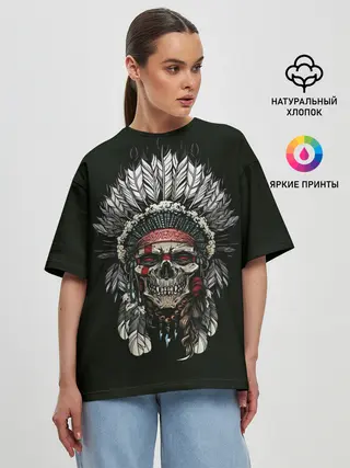 Женская футболка оверсайз / Indian Skull
