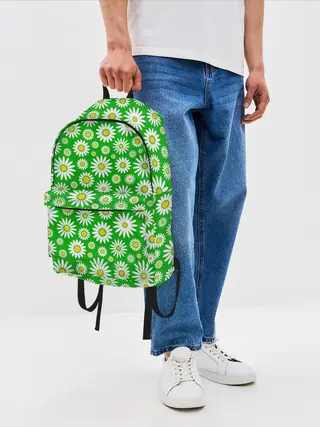 Рюкзак джинсовый / Ромашки на зелёном фоне