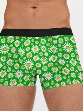 Мужские трусы боксеры / Ромашки на зелёном фоне