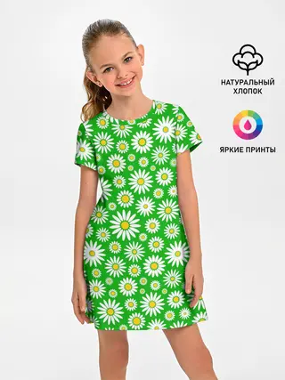 Леггинсы для девочки / Ромашки на зелёном фоне