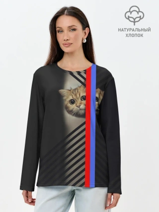 Лонгслив женский. Хлопок / Кот