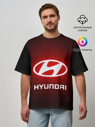 Мужская футболка оверсайз / HYUNDAI / ХЕНДАЙ / RED STYLE