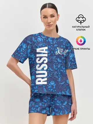 Женская пижама с шортами / ФОРМА СБОРНОЙ РОССИИ | ГЖЕЛЬ