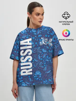 Женская футболка оверсайз / ФОРМА СБОРНОЙ РОССИИ | ГЖЕЛЬ