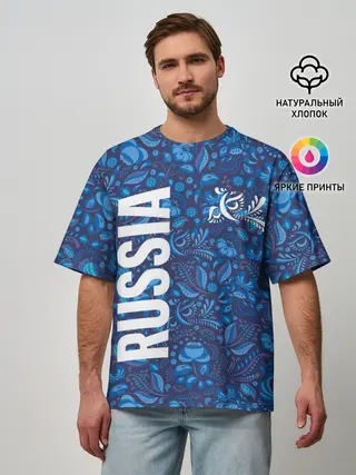 Мужская футболка оверсайз / ФОРМА СБОРНОЙ РОССИИ | ГЖЕЛЬ