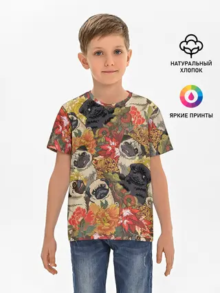 Мужская футболка оверсайз / Мопсики | Цветочки