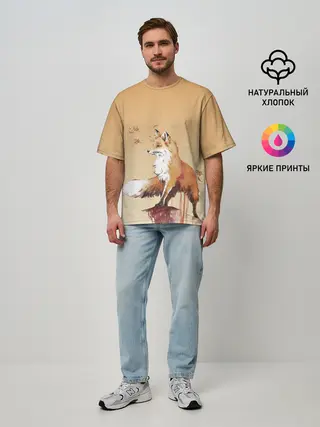Мужская футболка оверсайз / акварельная лиса задумчивости