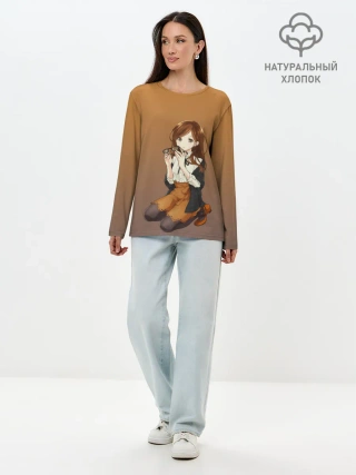 Лонгслив женский. Хлопок / анимешная девочка очки офис