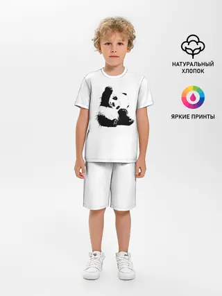 Детская пижама с шортами / Панда минимализм