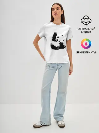 Женская футболка оверсайз / Панда минимализм
