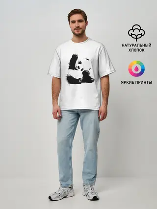 Мужская футболка оверсайз / Панда минимализм