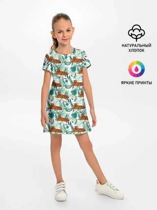 Детское платье / Цветы и Тигр Паттерн