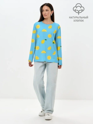 Лонгслив женский. Хлопок / Лимоны на голубом