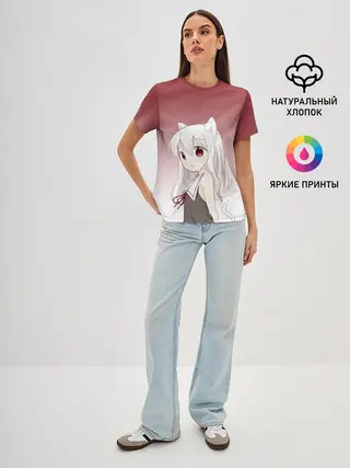 Женская футболка оверсайз / малышка ушки хвост глаза
