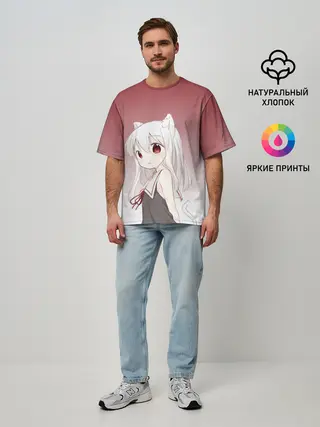 Мужская футболка оверсайз / малышка ушки хвост глаза