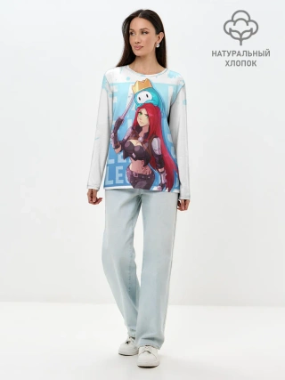 Лонгслив женский. Хлопок / Fall guys x league of legands