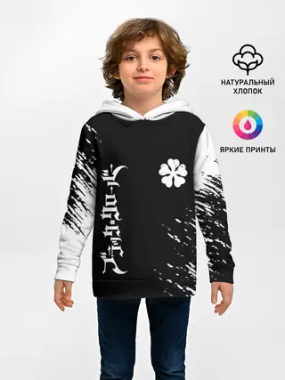 Детский лонгслив / Белый логотип Черный клевер на черном
