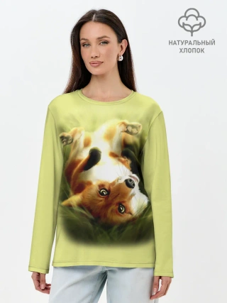Лонгслив женский. Хлопок / Лиса на траве