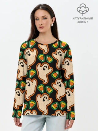 Лонгслив женский. Хлопок / Привидения | Колпаки