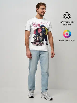 Мужская базовая футболка / Танджиро и Незуко под укрытием Гию