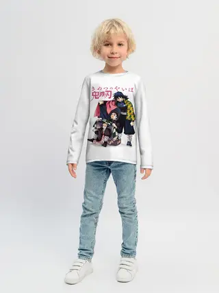 Детский лонгслив / Танджиро и Незуко под укрытием Гию