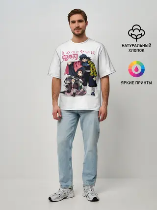 Мужская футболка оверсайз / Танджиро и Незуко под укрытием Гию