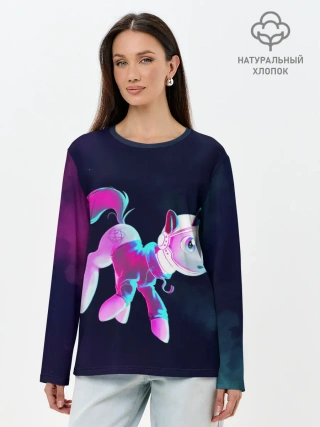 Лонгслив женский. Хлопок / Пони в космосе