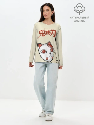 Лонгслив женский. Хлопок / Маска Танджиро Камадо