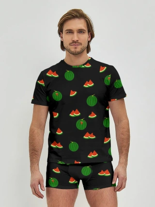 Мужские трусы с футболкой / Арбуз на черном фоне