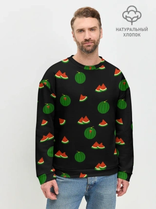 Мужской лонгслив базовый / Арбуз на черном фоне