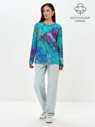 Лонгслив женский. Хлопок / Красочная медуза