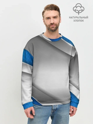 Мужской свитшот базовый / 3D СЕРЕБРО BLUE LINES