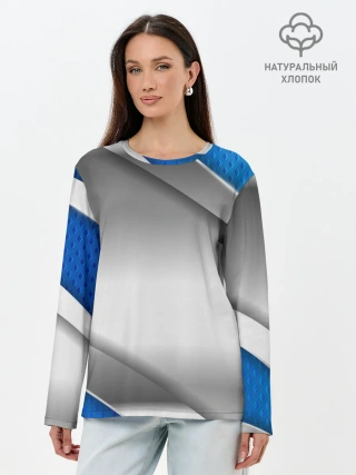 Лонгслив женский. Хлопок / 3D СЕРЕБРО BLUE LINES