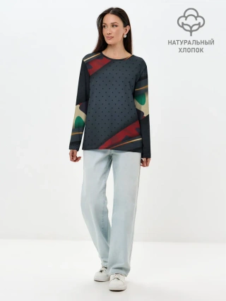 Лонгслив женский. Хлопок / 3D Dark red & black