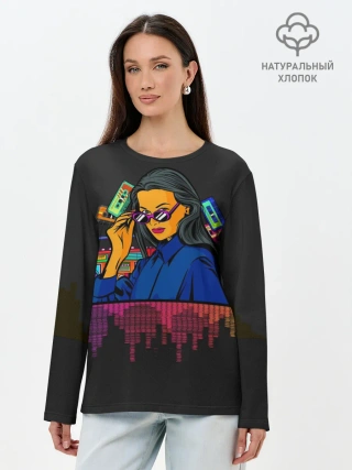 Лонгслив женский. Хлопок / Ретро стиль. Девушка.