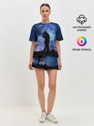 Женская пижама с шортами / Влюбленные на фоне луны