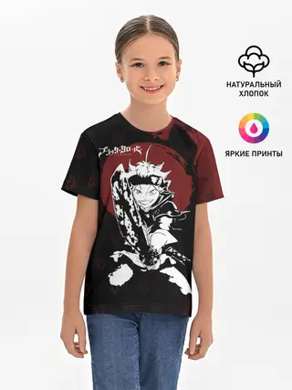 Детская базовая футболка / Чёрный клевер Аста с мечом