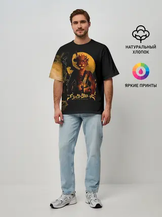 Мужская футболка оверсайз / Чёрный клевер Аста желтая луна
