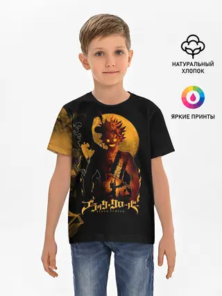 Детская базовая футболка / Чёрный клевер Аста желтая луна