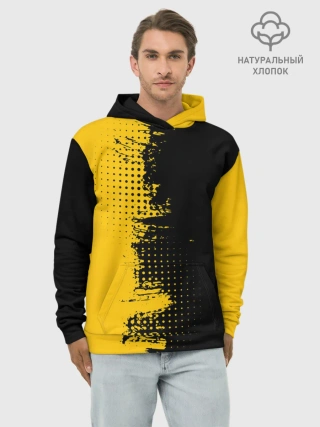 Худи мужской база хлопок / ЧЕРНО ЖЕЛТЫЙ ГРАНЖ | GRUNGE