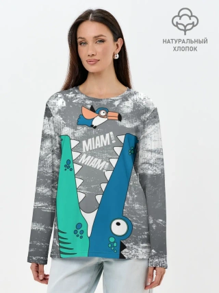 Лонгслив женский. Хлопок / Крокодил и птичка Miam