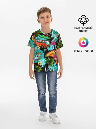Детская пижама с шортами / Пальмы, волны, серфинг