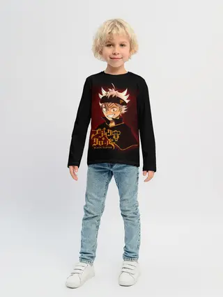 Детский лонгслив / Чёрный клевер улыбка Аста