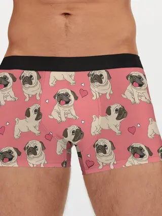 Мужские трусы с футболкой / Мопсики и Сердечки