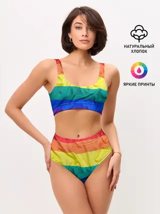 Женские топ и трусы / Радуга - мятая ткань полотно